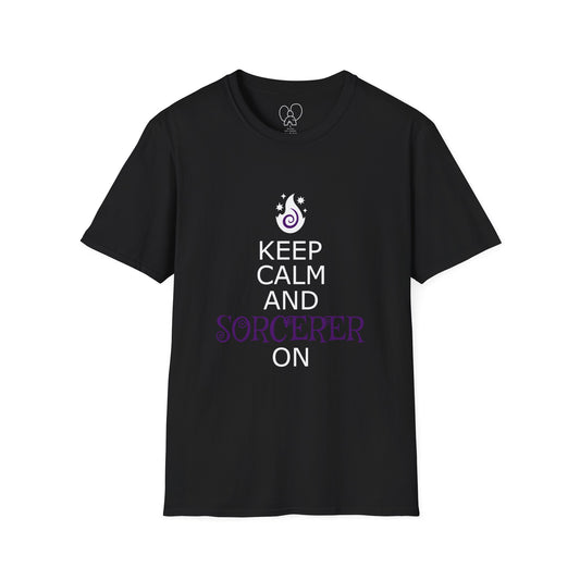 Keep Calm Sorcerer T-Shirt, Unisex Softstyle Tee, Magical Gift, Halloween Apparel, Witchy Vibes, Casual Wear