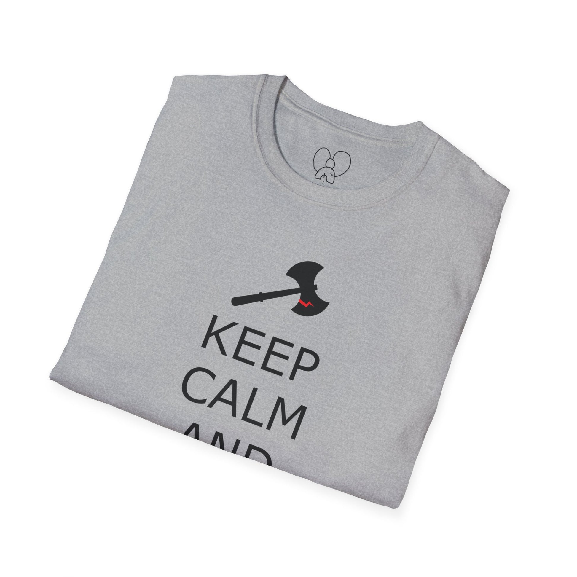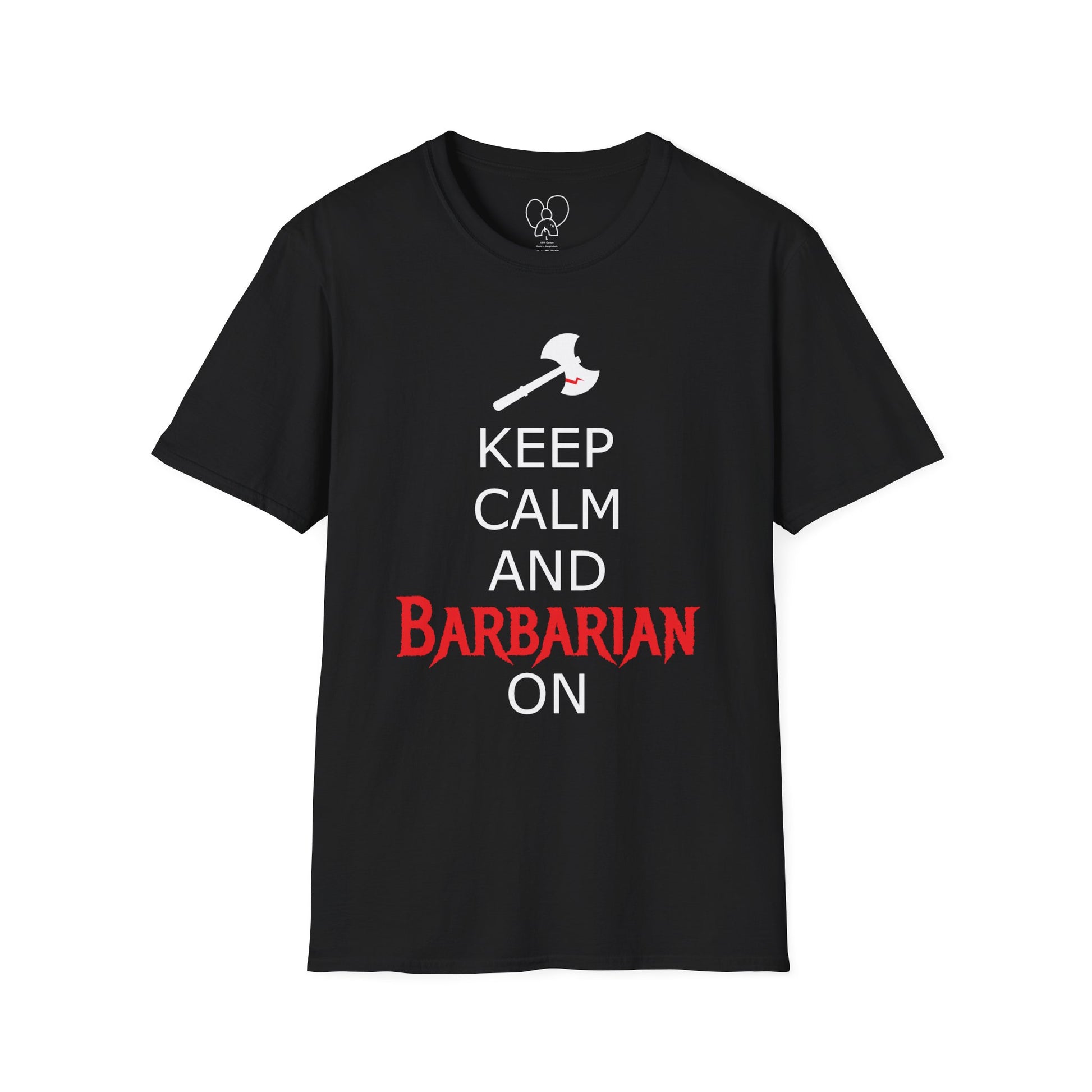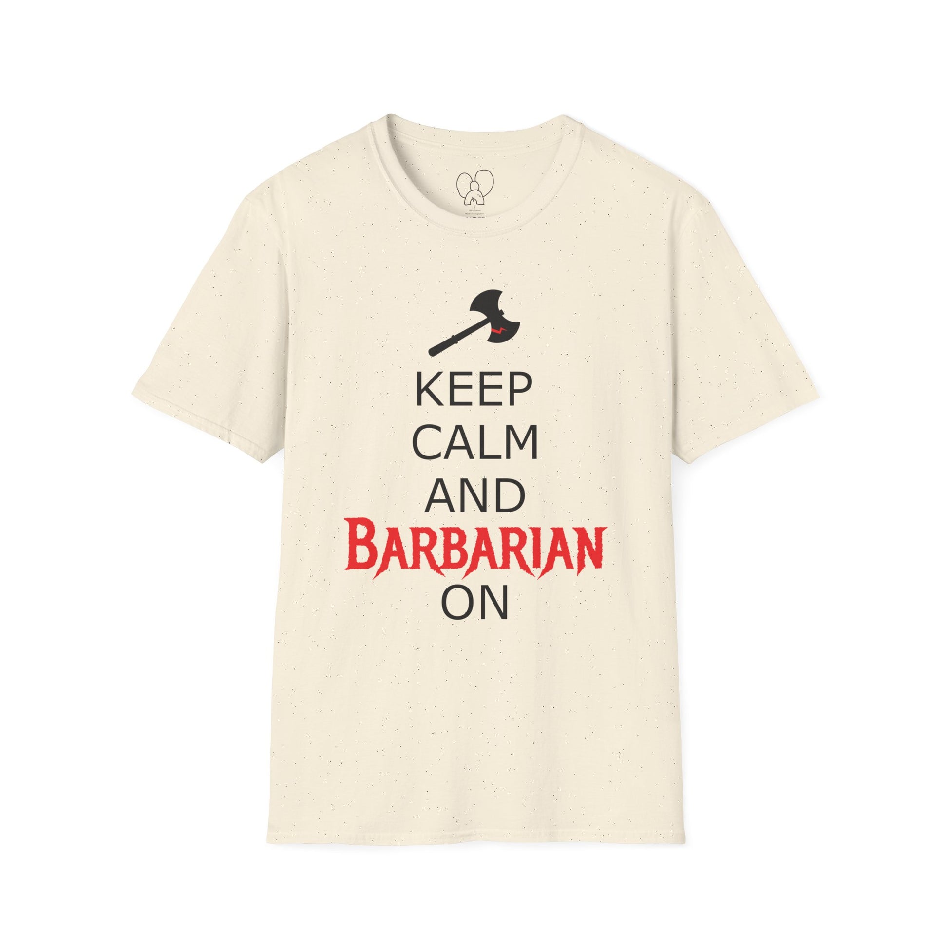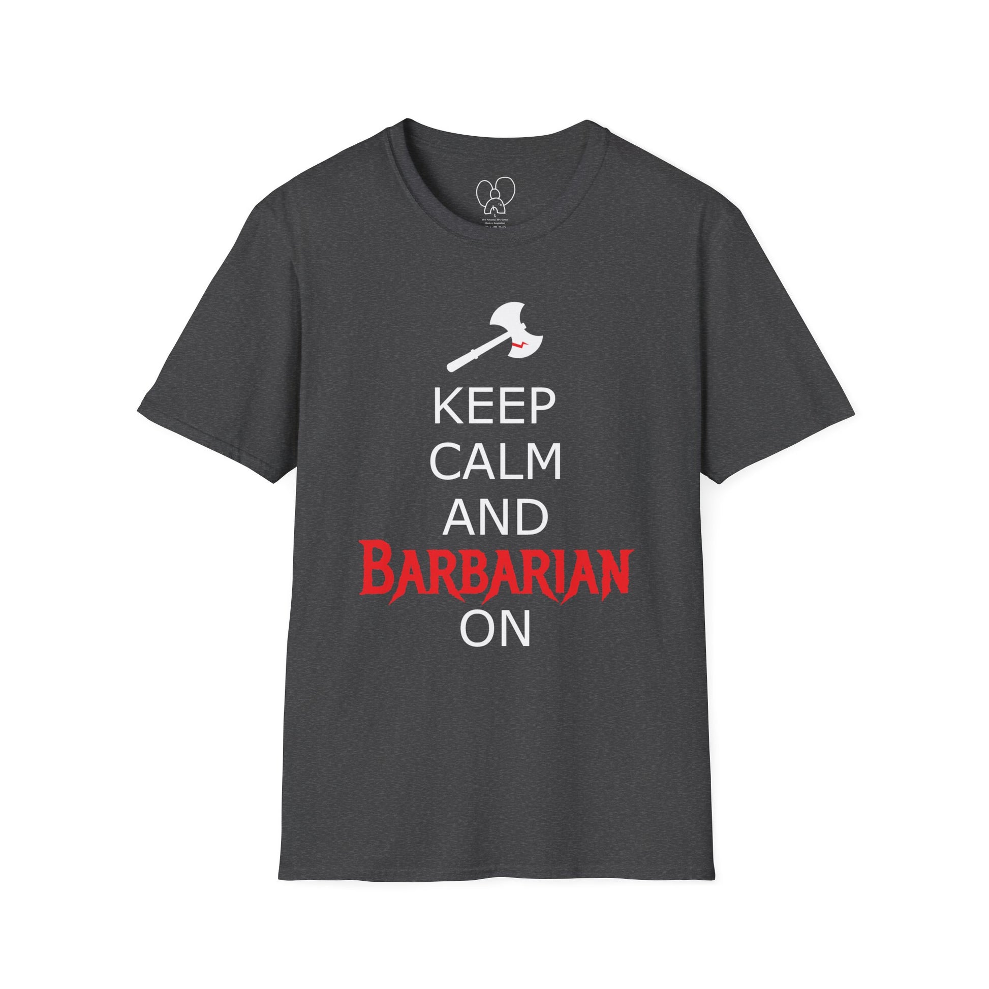 Keep Calm and Barbarian On Unisex Softstyle T-Shirt, Funny Graphic Tee, Gift for Comic Fans, Casual Wear, Great for Parties, Birthday Gift